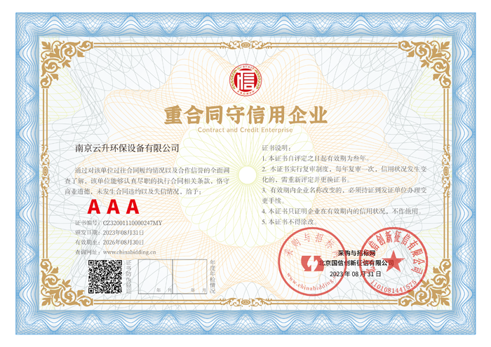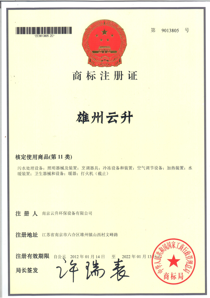 南京云升環保設備有限公司全體員工愿以環境保護為己任,以市場為導向,以優質服務為原則,嚴格的管理、先進的生產工藝、至上的品質、完善的售前售后服務,與廣大新老用戶攜手并進,共鑄輝煌。公司已通過ISO9001:2000質量管理體系標準認證,成為江蘇省高新企業,并進行不斷的技術改進和創新,為客戶和合作伙伴提供滿意的產品。
